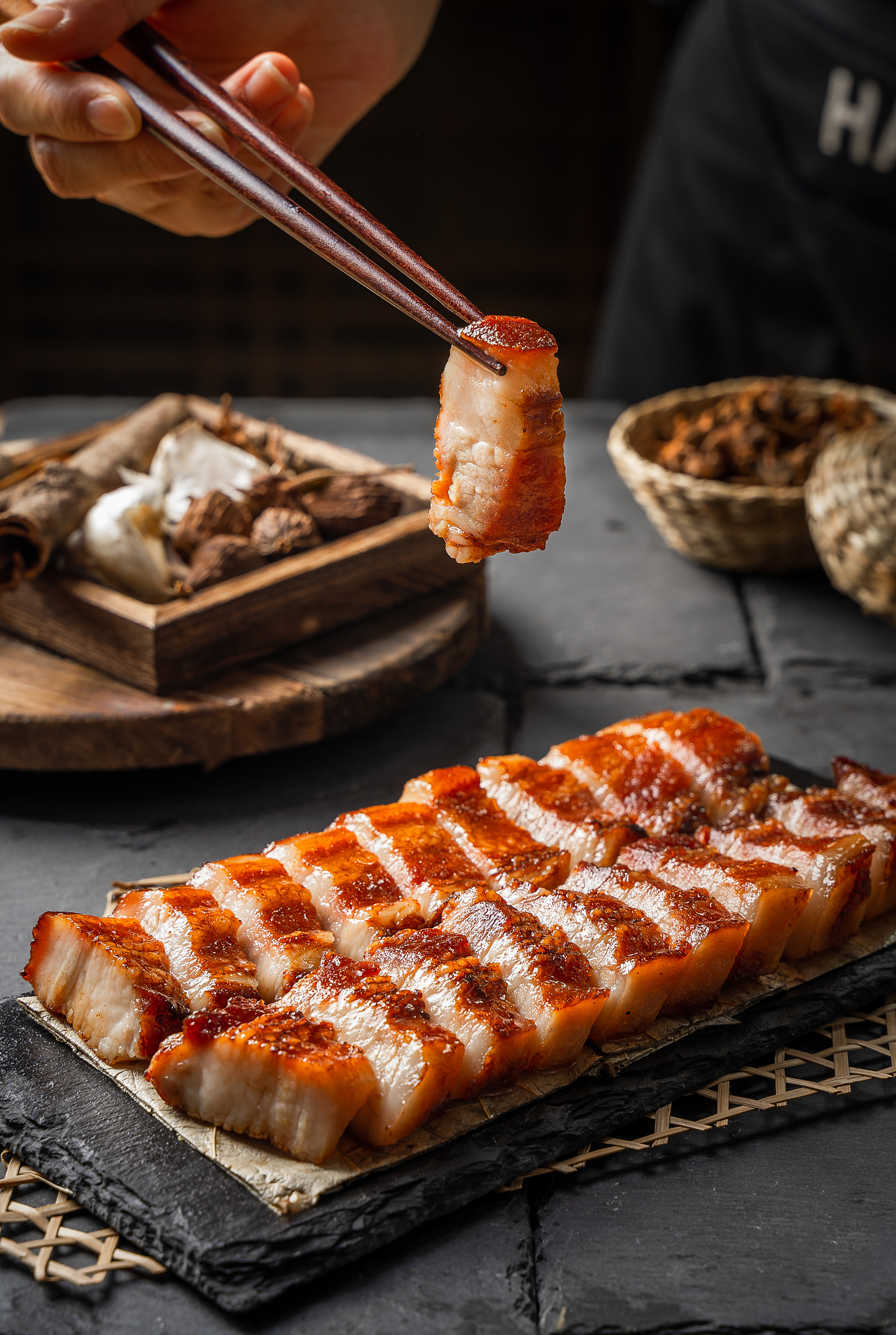 五花肉的皮面涂上精盐,腌制2小时。